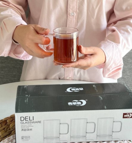 استکان پیرکس دلی ۲۲۰ میل دسته دار بسته ۶ عددی