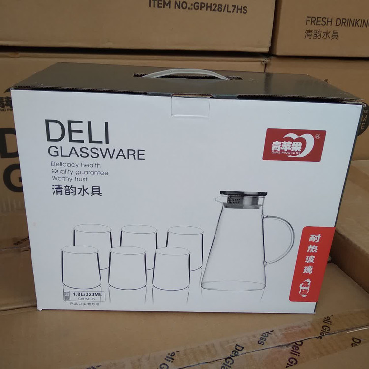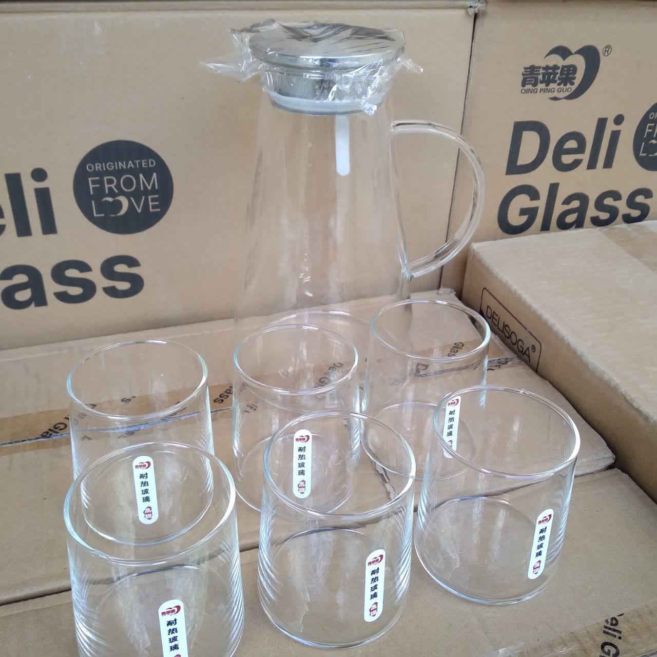 پارچ و لیوان پیرکس دلی طرح ساده مدل DELI GPH28/L7 320ML