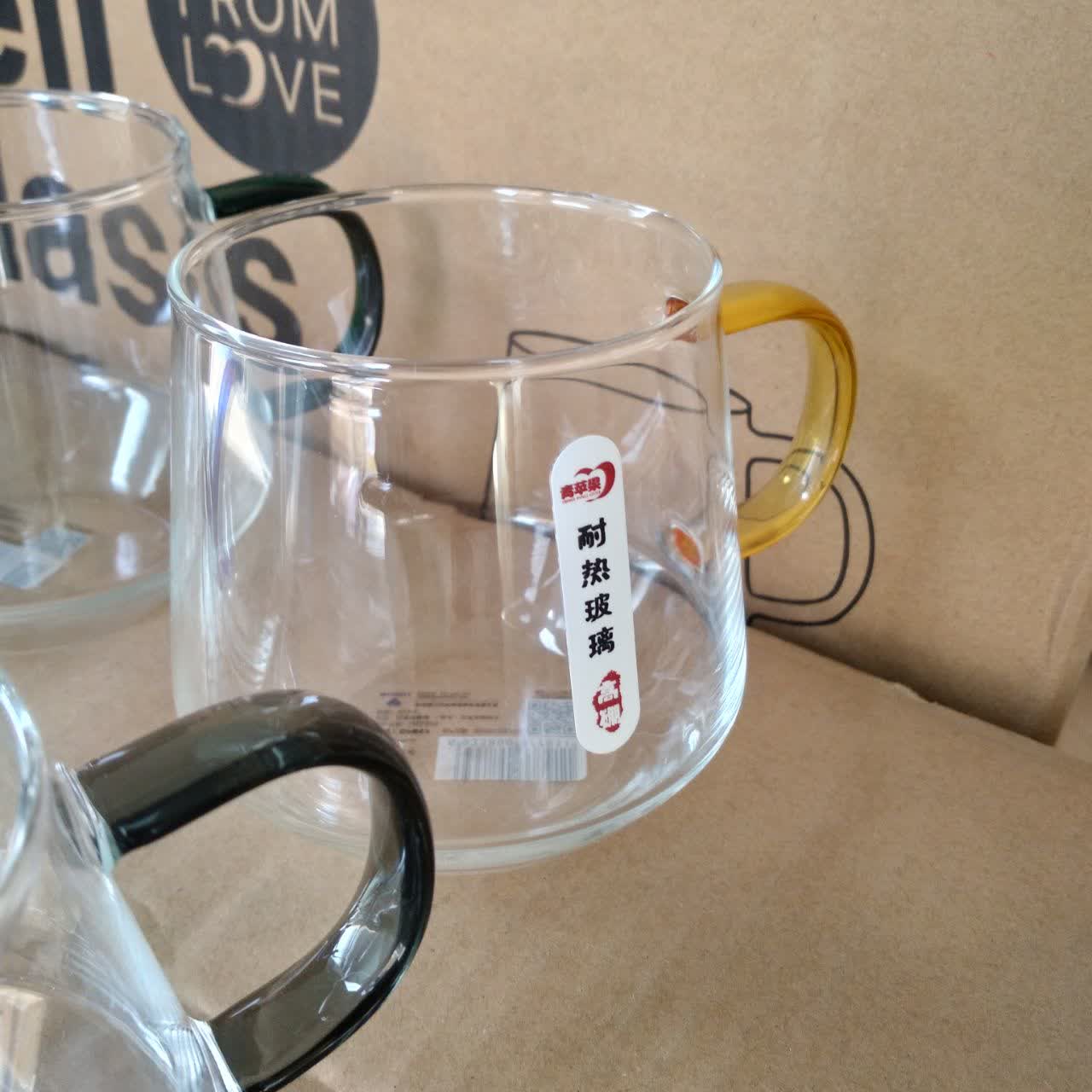 لیوان پیرکس ۴۰۰ میل دسته رنگی ست ۴ عددی برند دلی